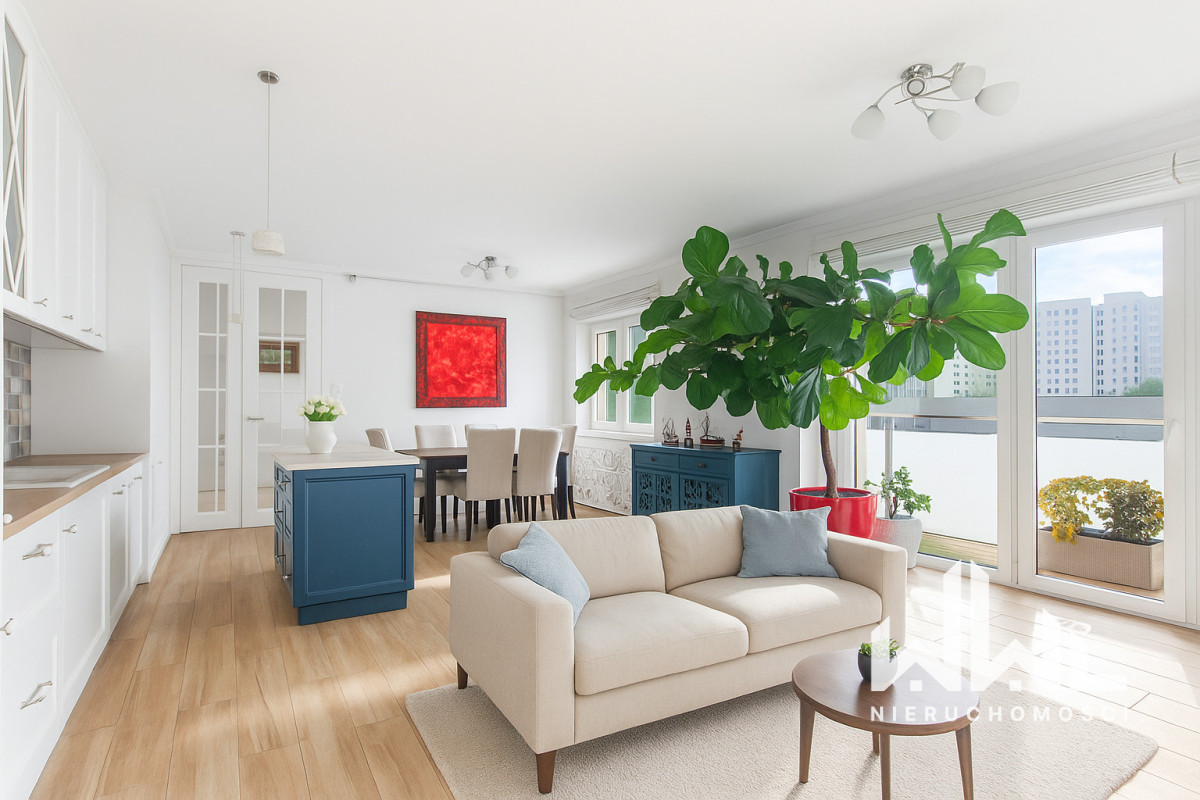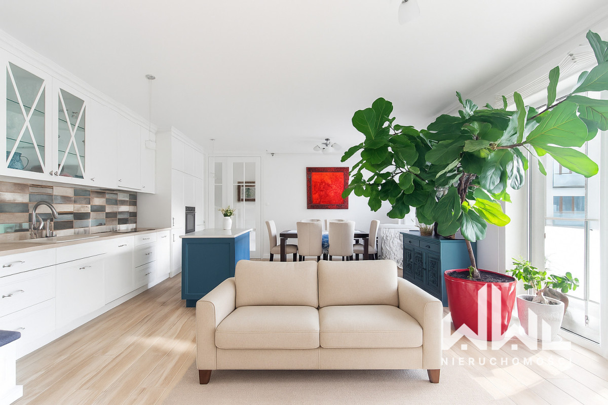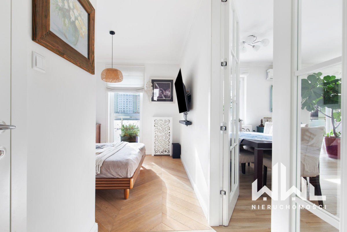 Wnętrze zaprojektowano z wyjątkową dbałością o detal - wysokość pomieszczeń 285 cm, szlachetne materiały, idealne proporcje i perfekcyjna harmonia kolorów tworzą atmosferę elegancji i spokoju.